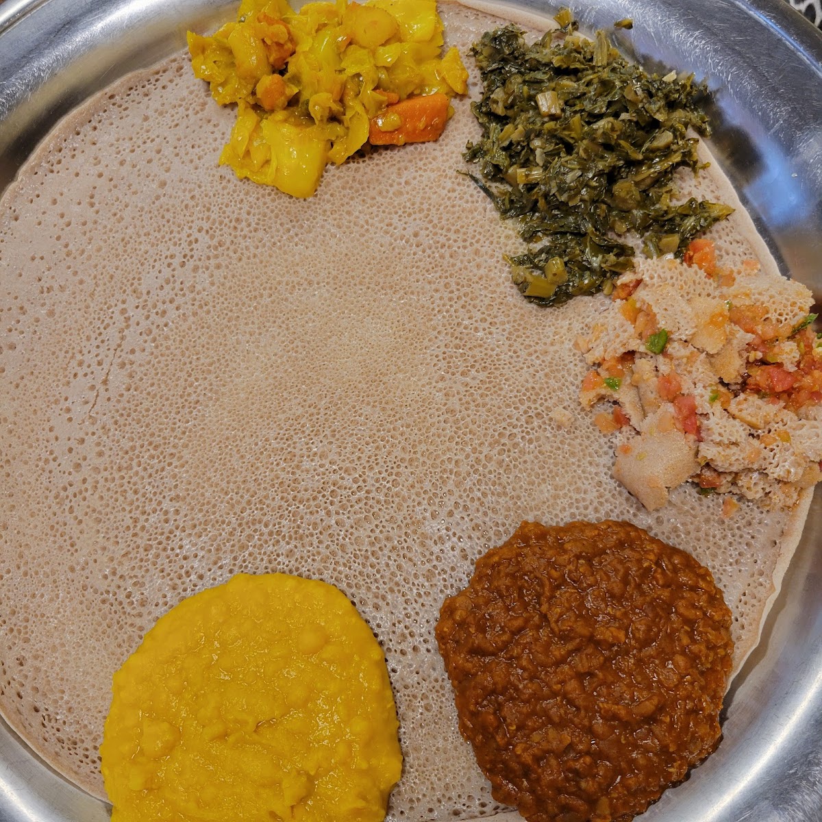 On my first visit, the server explained the menu with the ease of someone who actually eats the food they serve. Ethiopian dining can feel overwhelming if you’re new to it, but here the process is simple. You choose a combination platter, the kitchen prepares a variety of stews, and everything arrives on injera, the spongy fermented flatbread that doubles as utensil and flavor enhancer. I watched a nearby table of first-timers relax as soon as they realized sharing is the point, not a rule you can mess up.